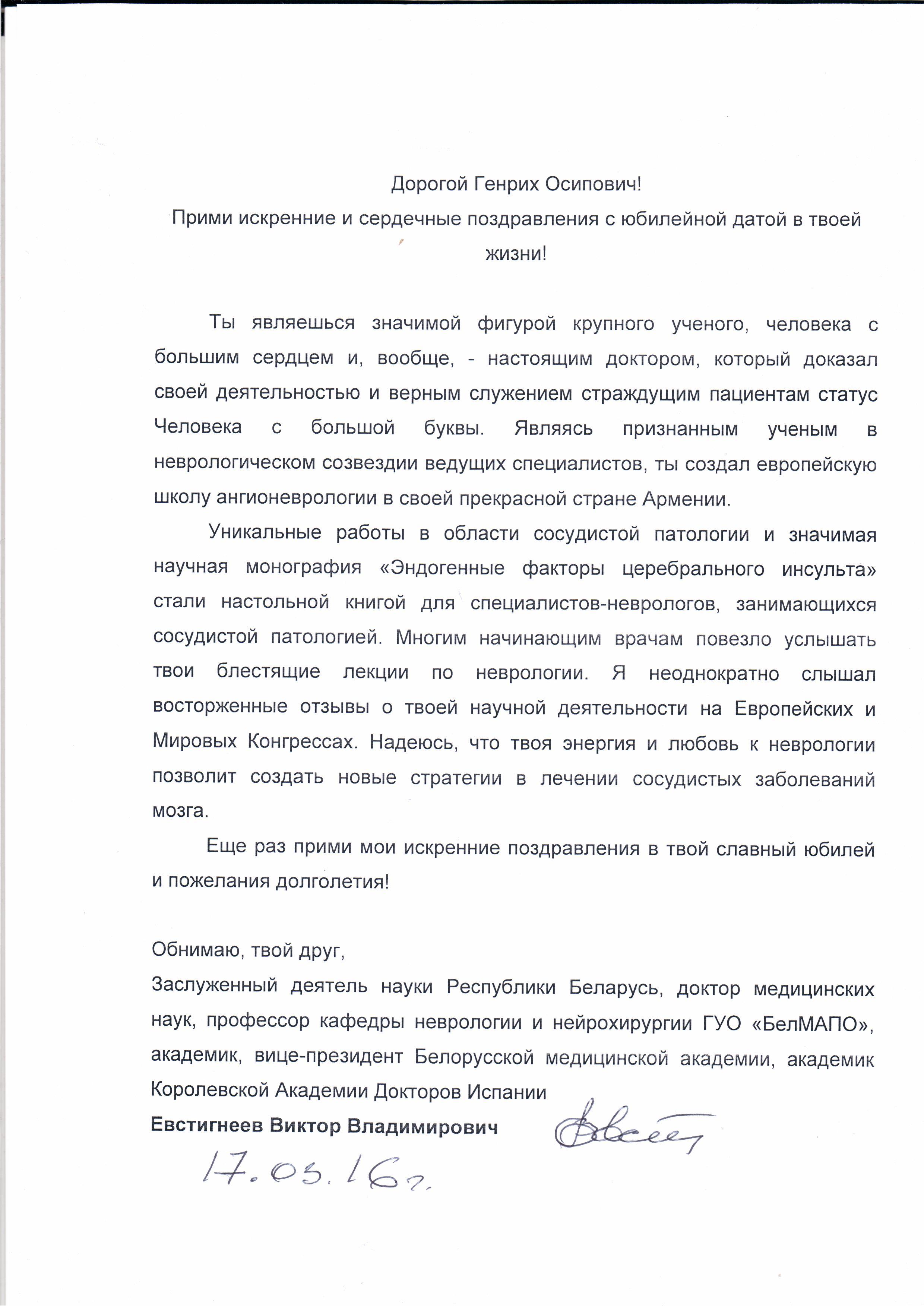 Евстигнеев Виктор Владимирович, заслуженный деятель науки Республики Беларусь, доктор медицинских наук, профессор кафедры нейрологии и нейрохирургии, ГУО "БелМАПО", академик, вице-президент Белорусской медицинской академии, академик Королевской Академии Докторов Испании