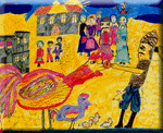 king got angry and ordered his men "Go, fetch that scoundrel, slaughter him, cook him and bring it to me so we may put an end to this mockery" Presently the king's men went, caught the cock and while taking him to the palace he cried out "Cock-a-doodle doo... the king has invited me to his palace." They slaughtered the cock put him in hot water to cook |