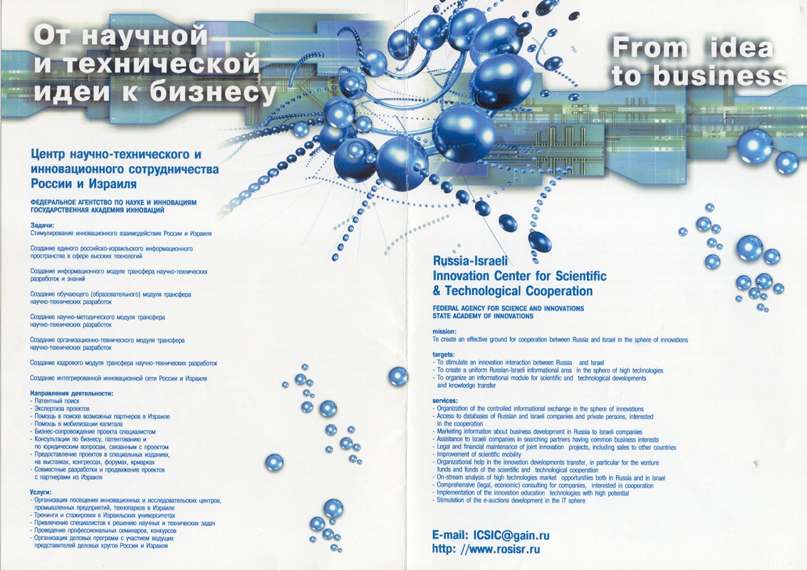 От научной и технической идеи к бизнесу (рекламный буклет). Центр научно-технического и инновационного сотрудничества России и Израиля