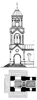 арочными отверстиями, увенчан пирамидальным куполом. Пологие конфигурации