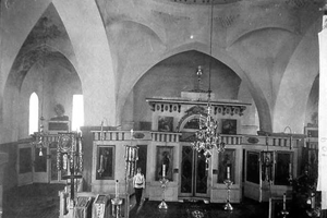 кверху вертикали, с колоколом в бельведере. Церковь разрушена.
