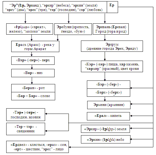 Рис. 3. Схема трансформации "Эр". Эрванд имя царя (потомка Ваагна), основателя античной столицы Армении Ервандашат (Эруандашат)