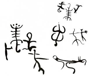Фигуры и символы наскального рисунка (рис.1) изображают сцену битвы, сражения вождя (царя, правителя), который натягивает тетиву мощного лука (сложного типа, см. приложение) и стрелу больших размеров. Лук опирается на треножник - весьма интересное и с точки зрения инженерного решения необычное для своего времени. Слева от вождя виднеется изображение «священной ящерицы», которую царь защищает от двух скорпионов. Под ящерицей изображен дракон. Дракон - классический древний символ, который является свидетельством мощи и силы царя. В Китае, Корее, Юго-Восточной Азии, Японии, а также в Армении дракон считался божеством воды, вызывающим плодородие и, позднее, - символом власти. В Египте образ дракона олицетворял силы мрака, побежденные богом солнца РА. В христианских легендах дракон – образ злого духа. В фольклоре известное сходство с драконом имеют образы сказочных чудовищ (образ крылатого, иногда многоголового, огнедышащего змея). Кроме того, именем Дракона названо одполярное созвездие Северного полушария.